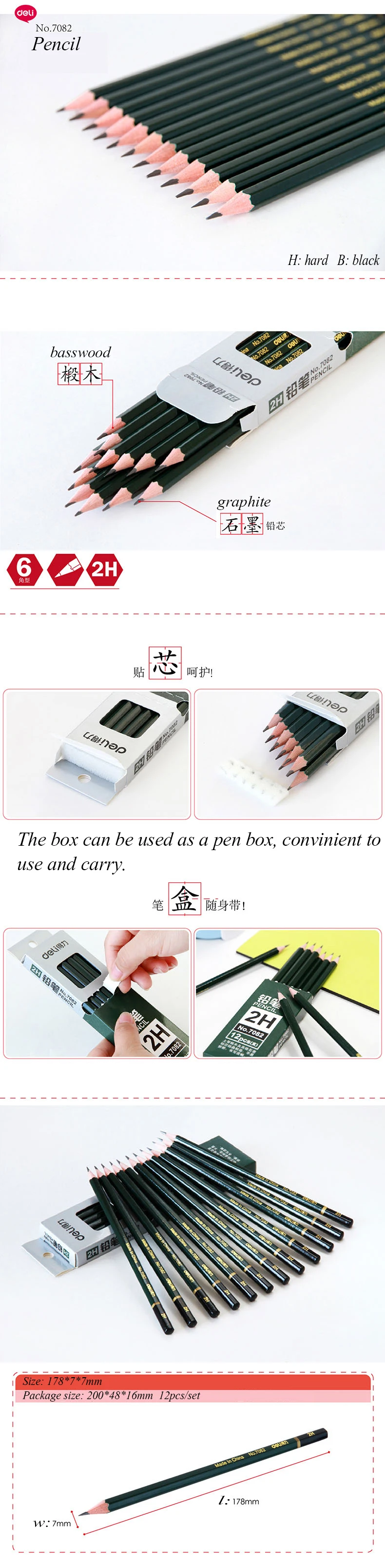 デリ鉛筆セット HB 2/3/4/5/6 H 2B 4B 6B 5B 7B 8B 10B 12B 木製描画